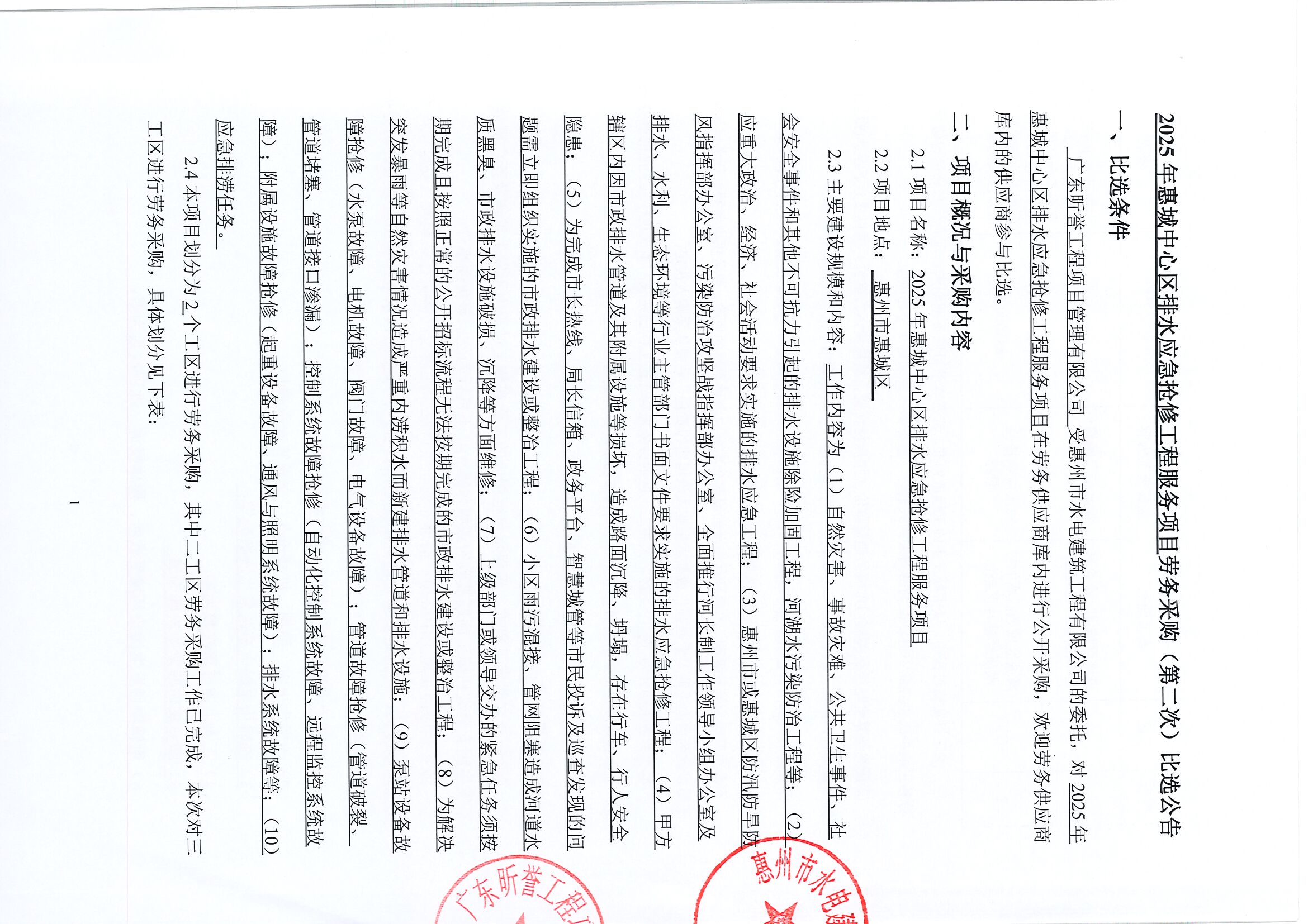 2025年惠城中心區(qū)排水應(yīng)急搶修工程服務(wù)項目勞務(wù)采購(第二次)比選公告
