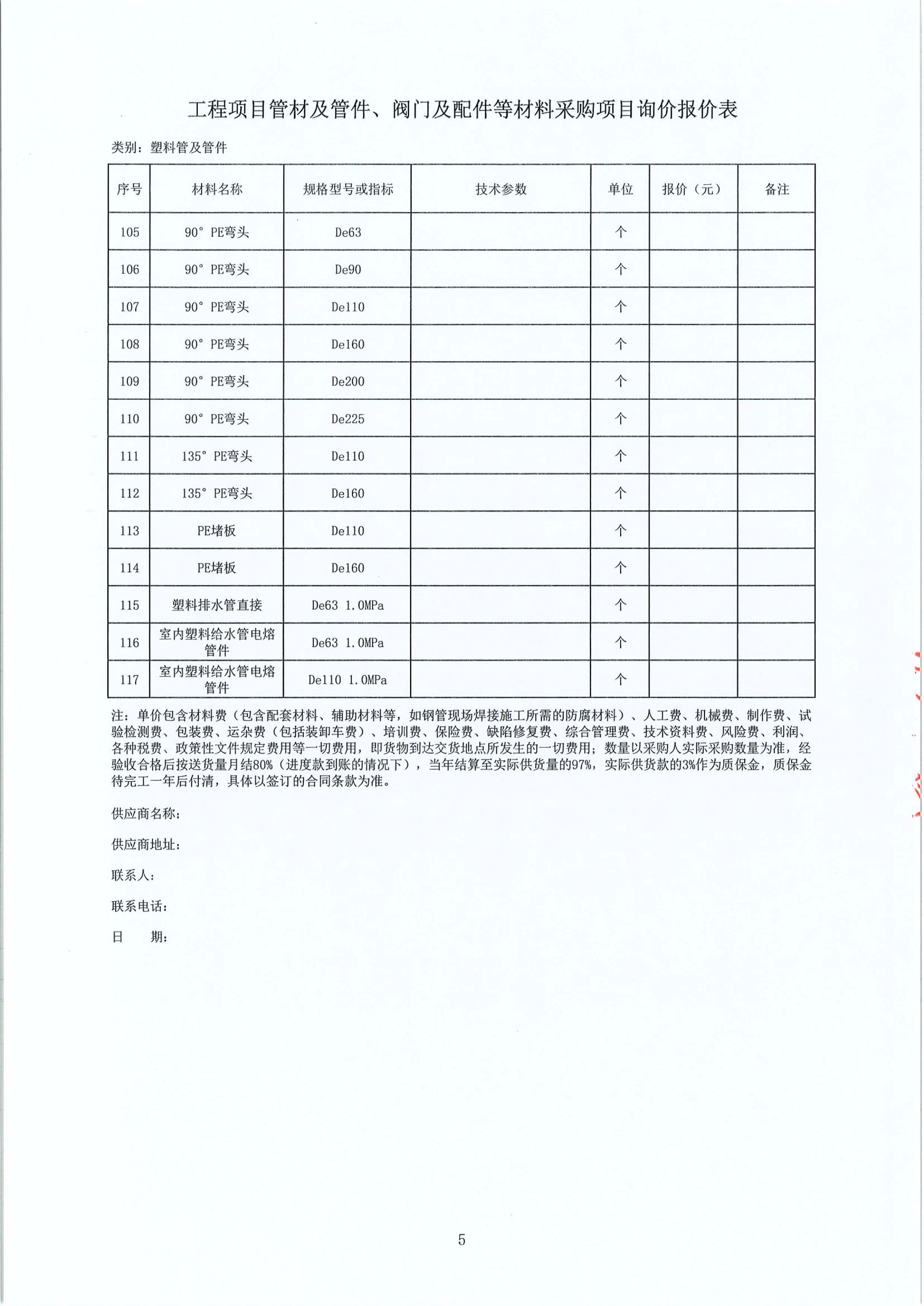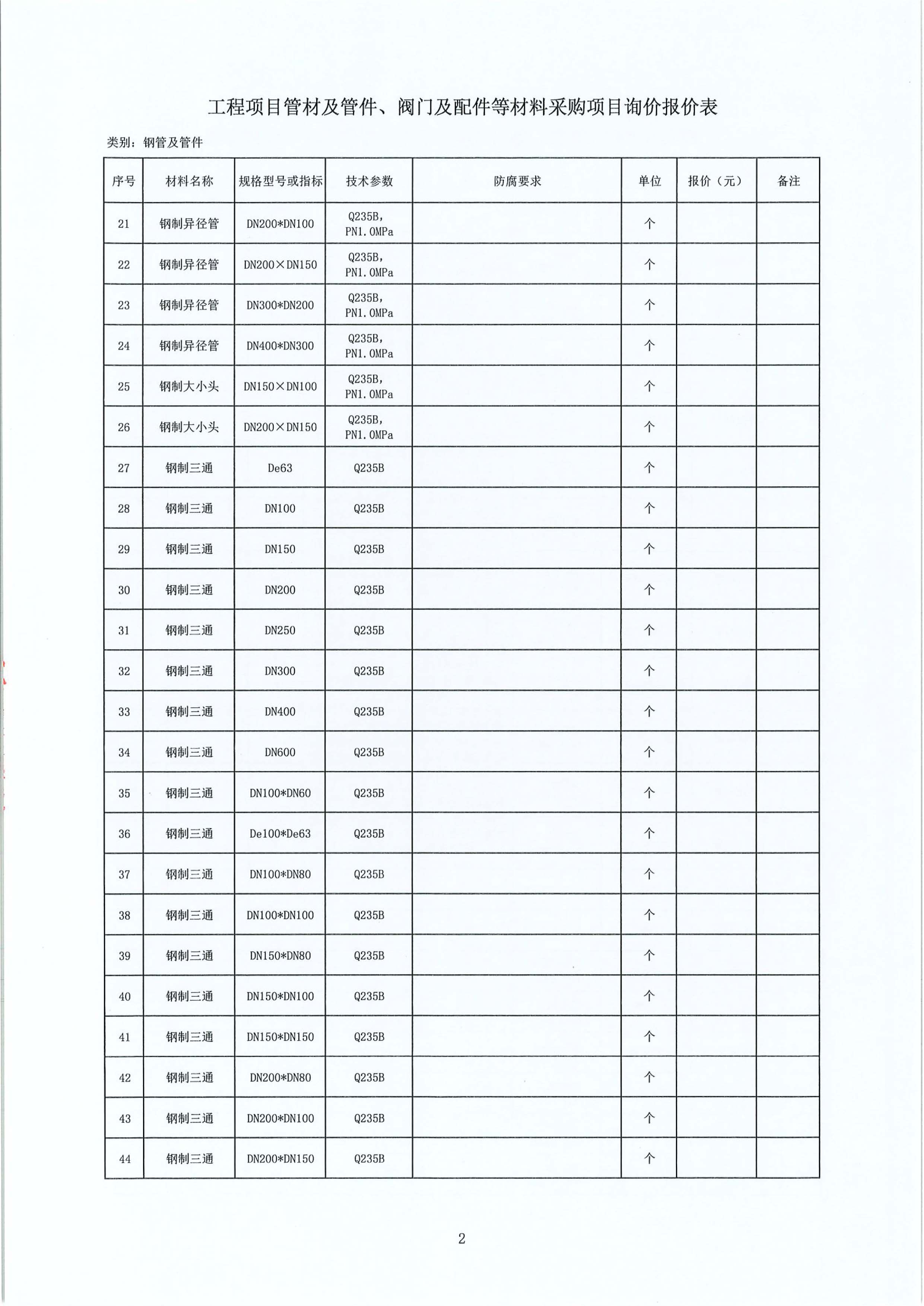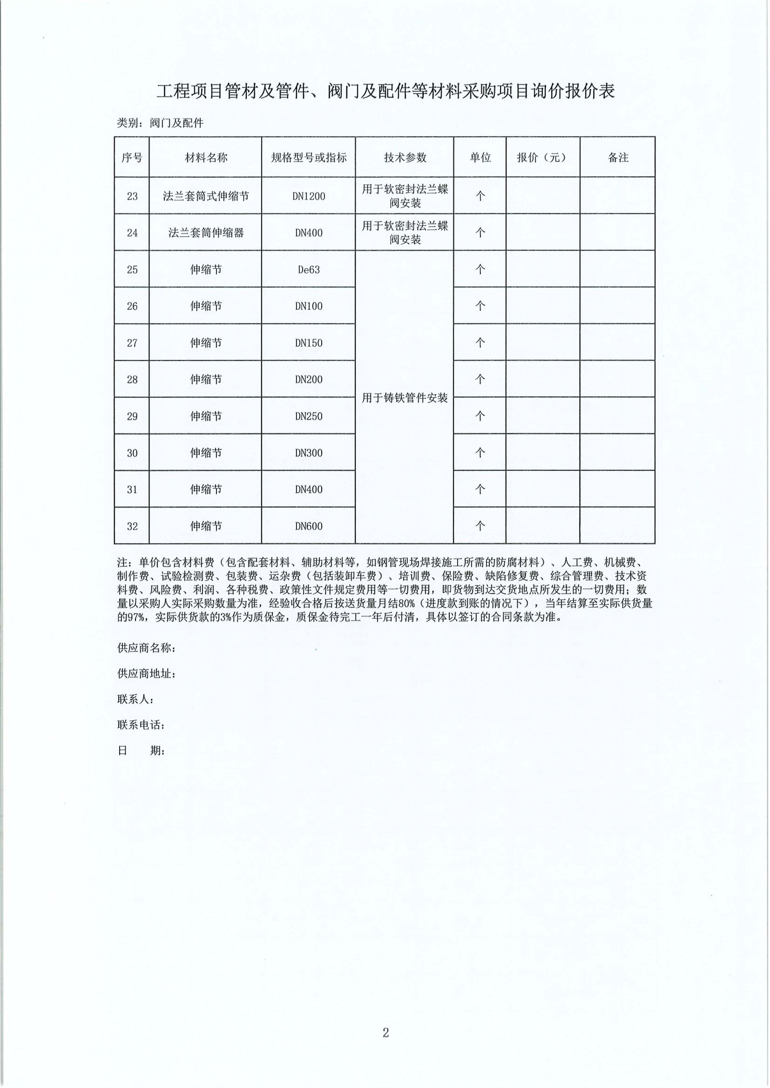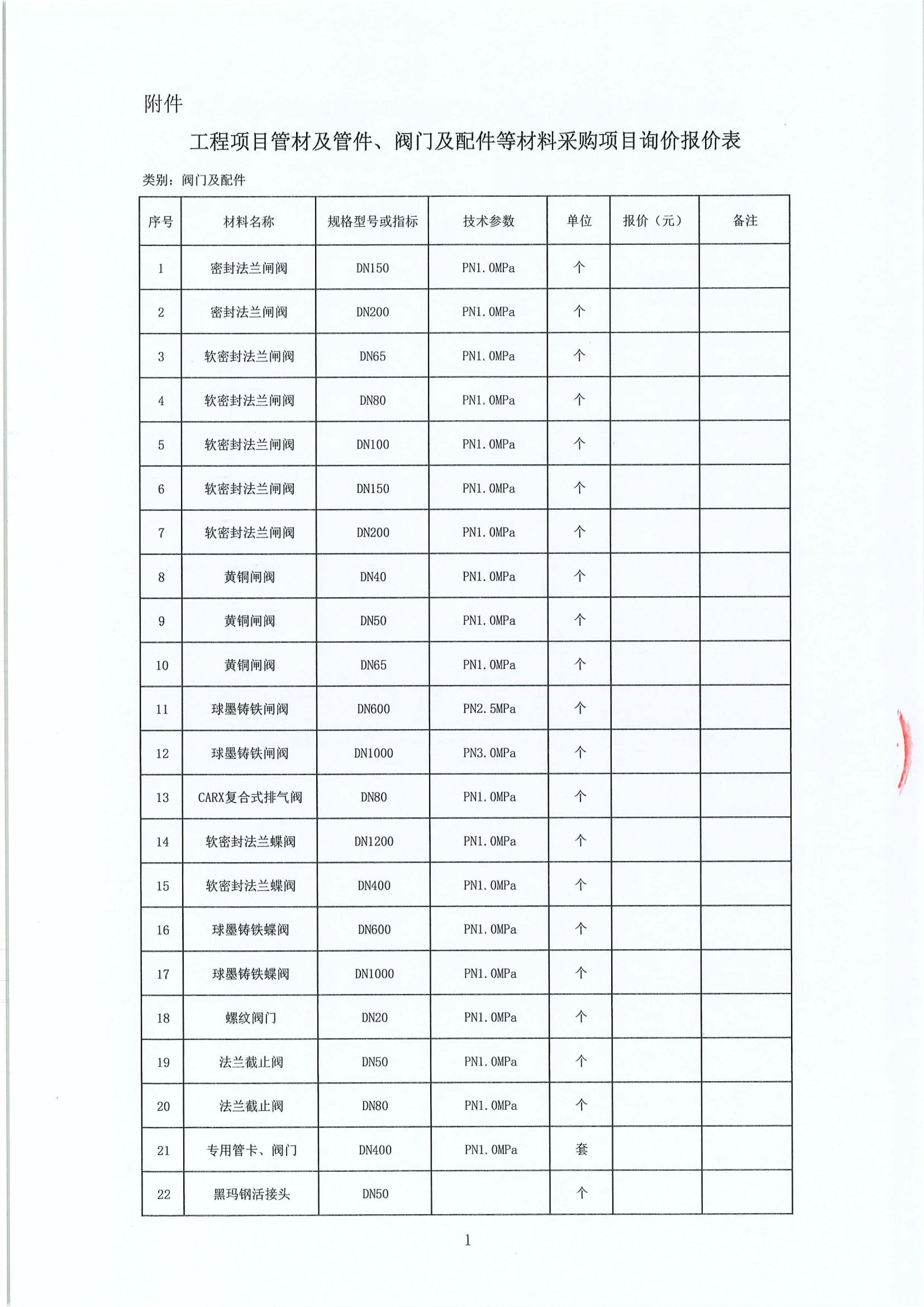 附件:工程項目管材及管件、閥門及配件等材料采購項目詢價報價表