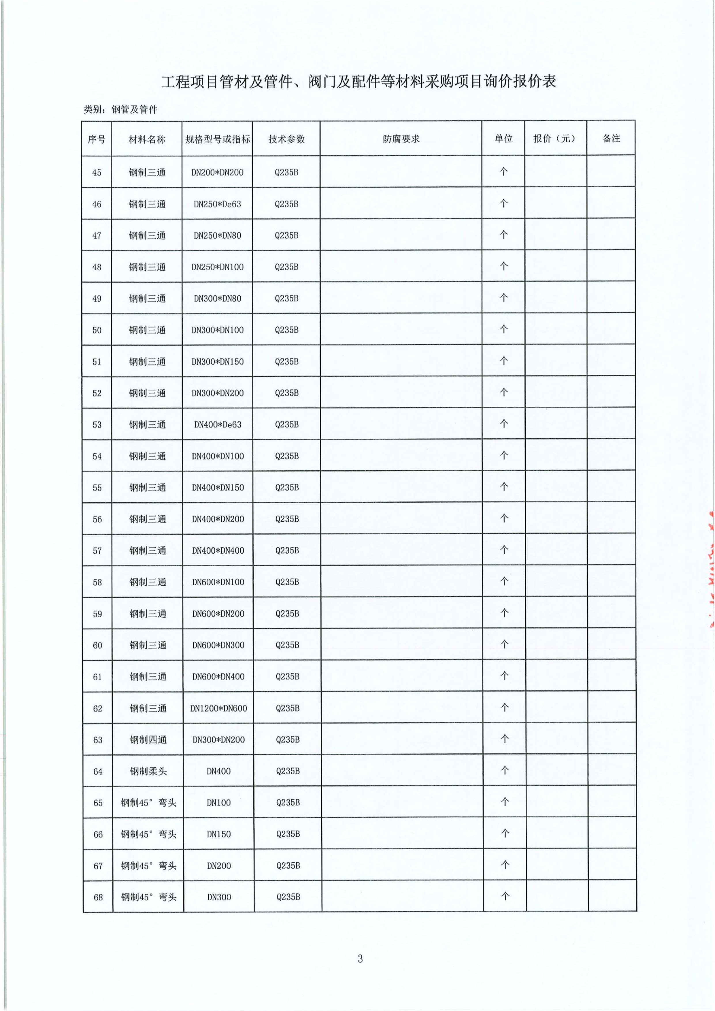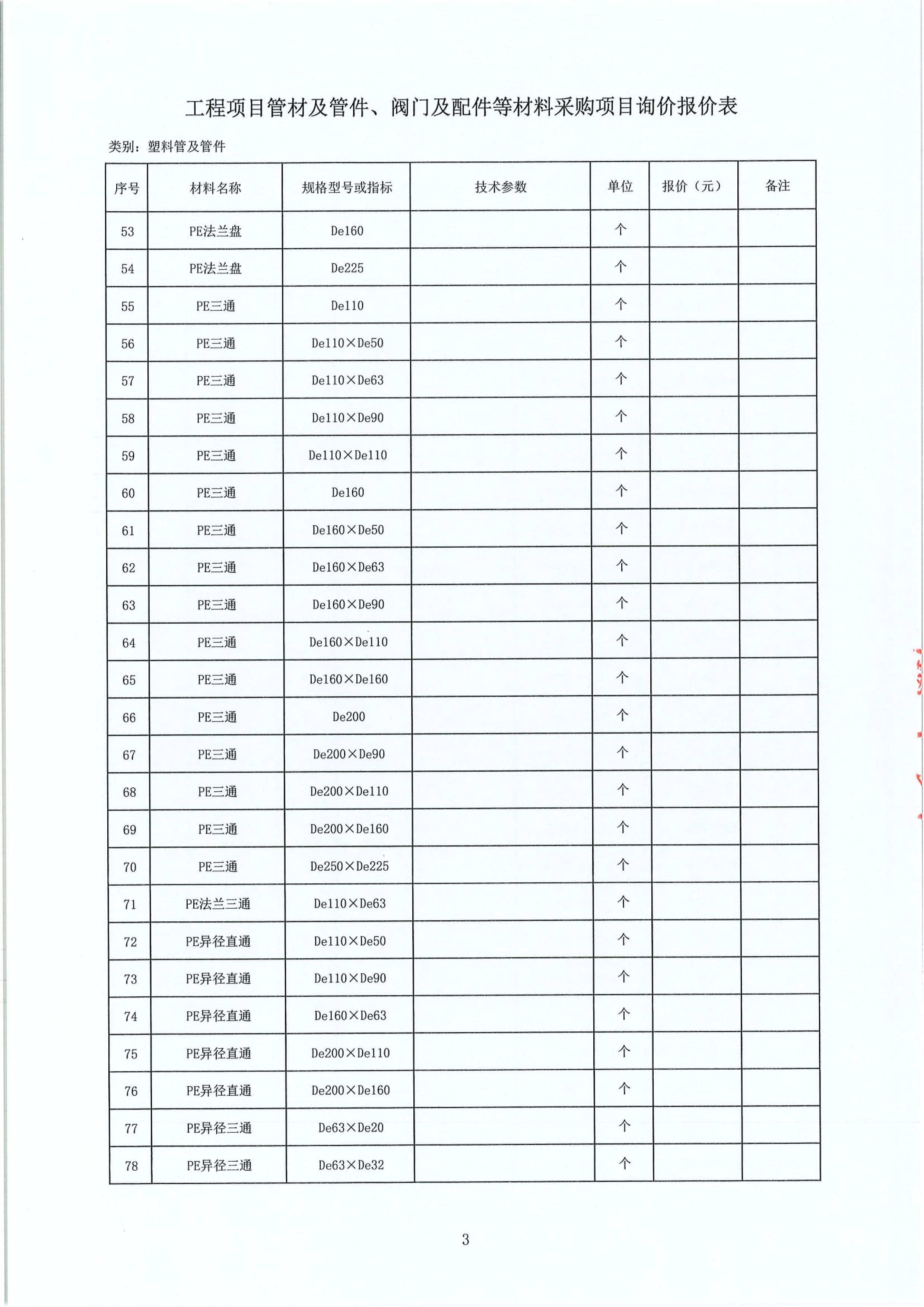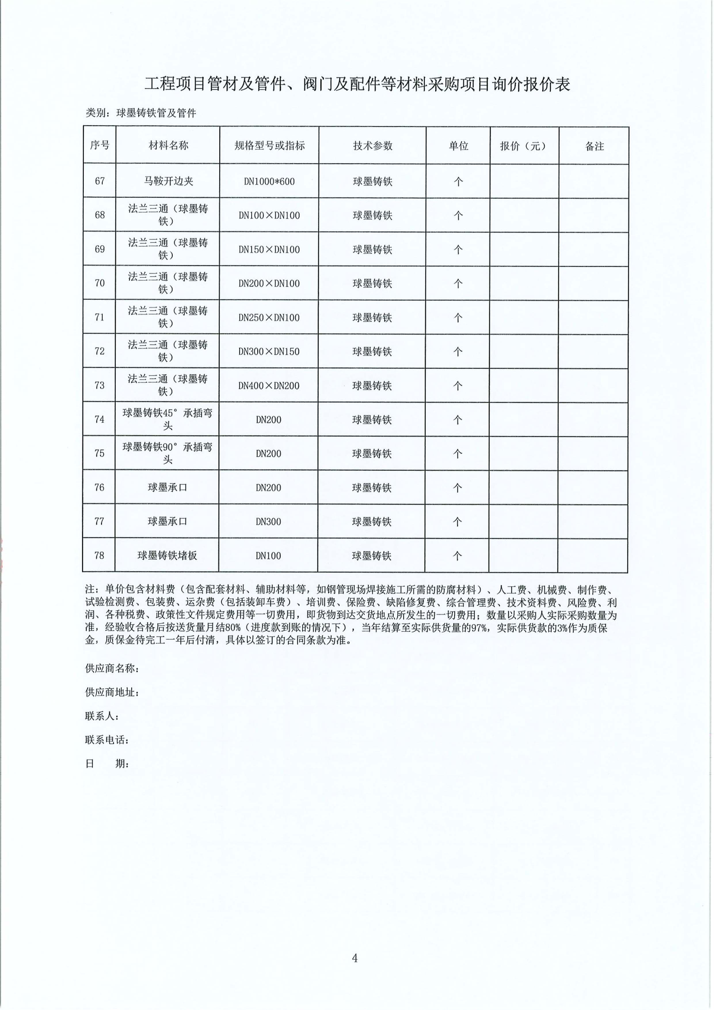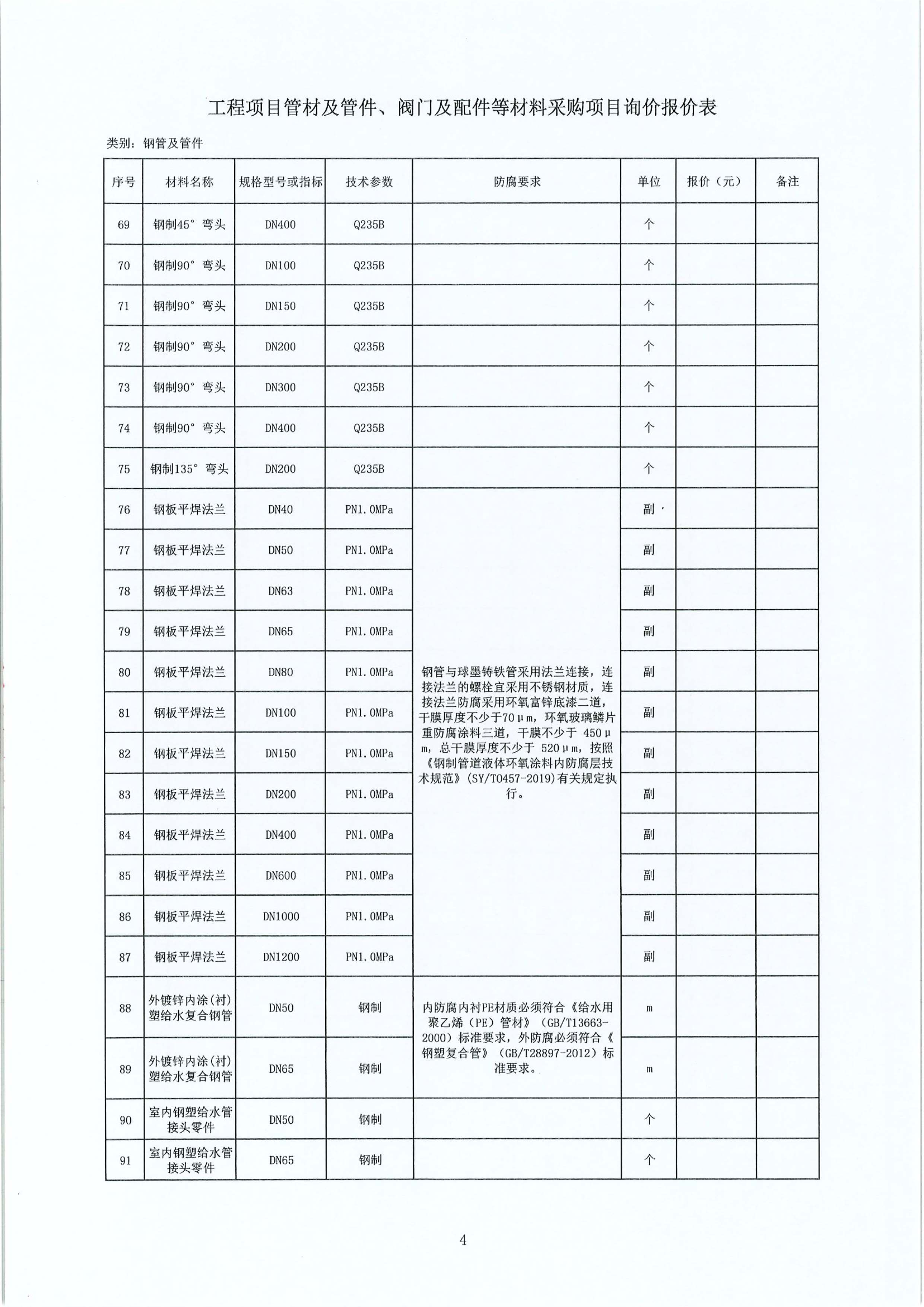 附件:工程項目管材及管件、閥門及配件等材料采購項目詢價報價表