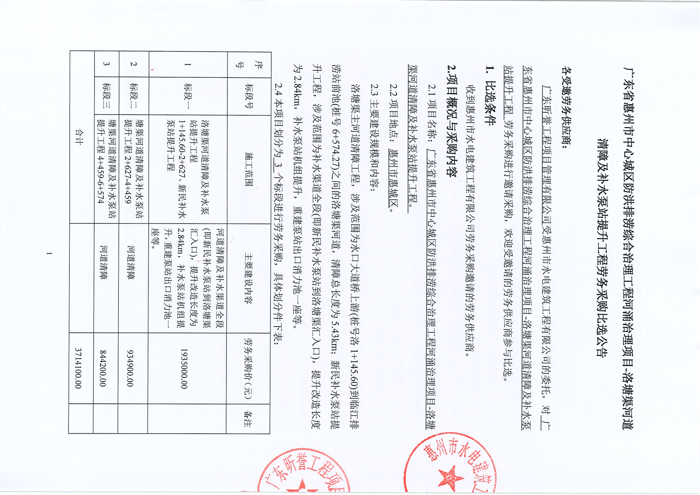 廣東省惠州市中心城區(qū)防洪排澇綜合治理工程河涌治理項目-洛塘渠河道清障及補水泵站提升工程勞務(wù)采購比選公告