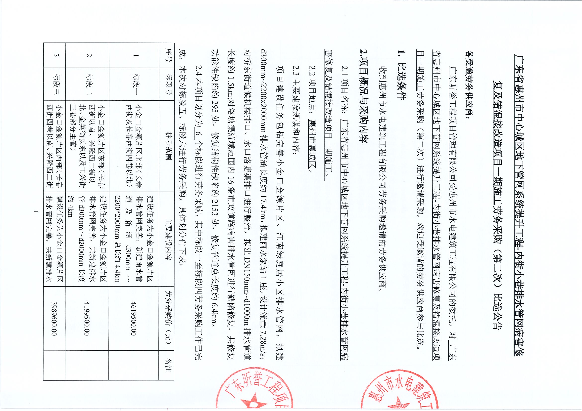 廣東省惠州市中心城區(qū)地下管網(wǎng)系統(tǒng)提升工程-內(nèi)街小巷排水管網(wǎng)病害修復(fù)及錯混接改造項目一期施工勞務(wù)采購中選候選人公示